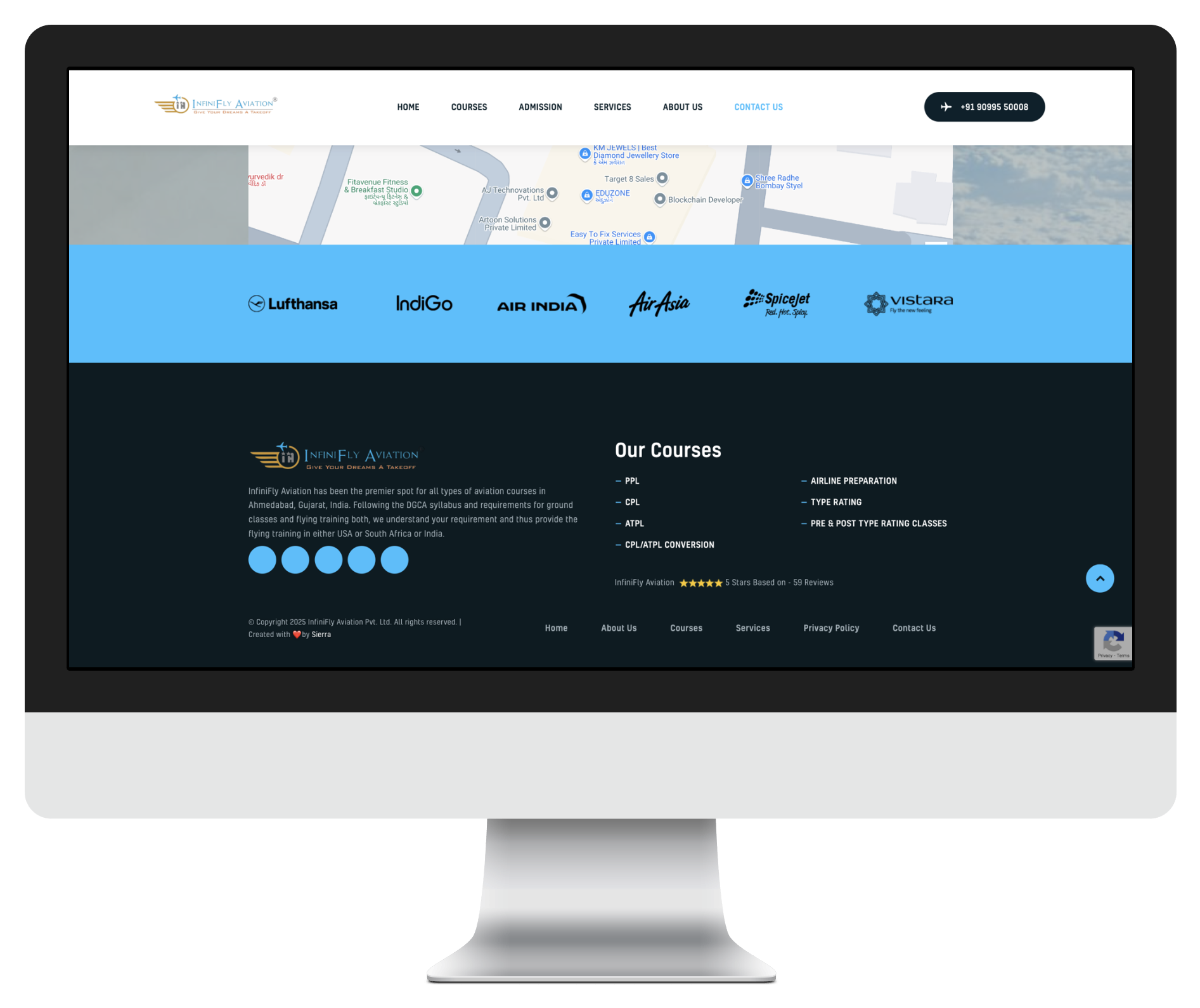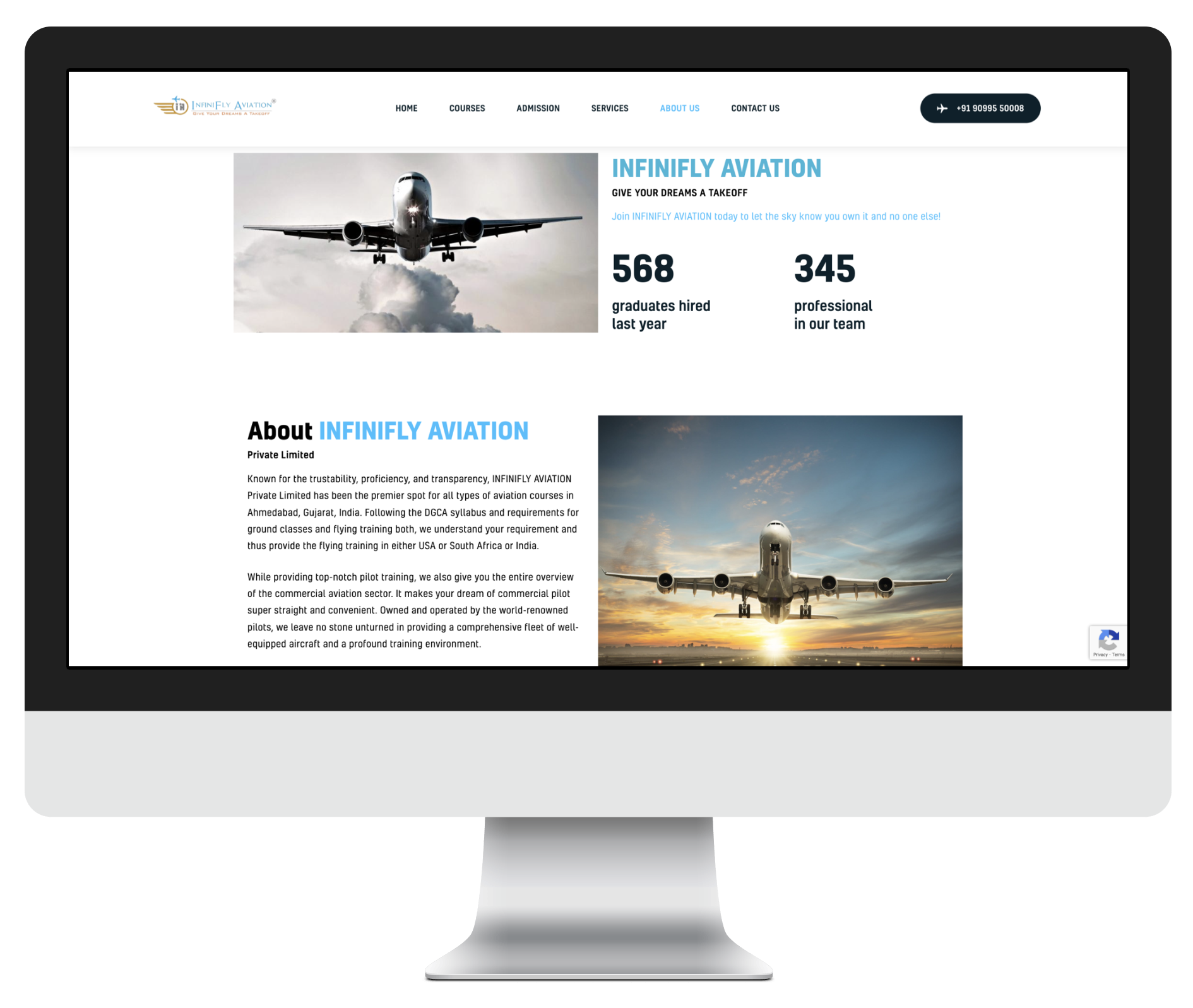 InfiniFly Aviation is a premier aviation academy based in Ahmedabad, offering DGCA‑approved pilot training programs for both domestic and international students. Their course lineup includes Private Pilot License (PPL), Commercial Pilot License (CPL), Airline Transport Pilot License (ATPL), type rating, conversion, and airline preparation—conducted on well-maintained aircraft and simulators To support their vision of high-quality, world-standard pilot education, they needed a sophisticated, modern website to effectively showcase courses, build credibility, and attract global inquiries.