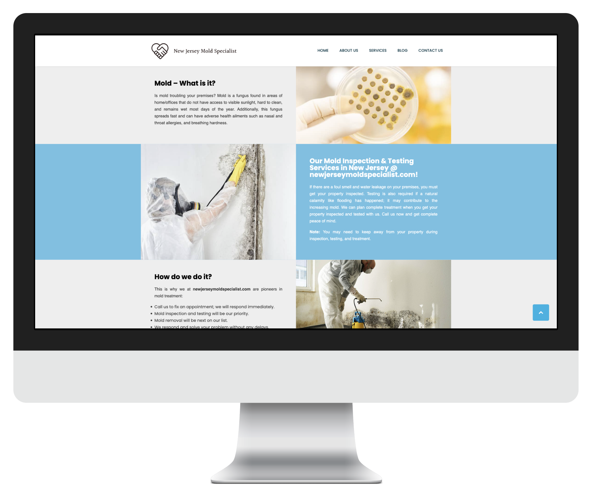New Jersey Mold Specialist needed a professional and trustworthy online presence that educates potential customers about their certified mold remediation and inspection services. They wanted the site to highlight key credentials—such as licensed technicians and 24/7 emergency support—and to clearly communicate service benefits, helping them stand out as a local industry leader