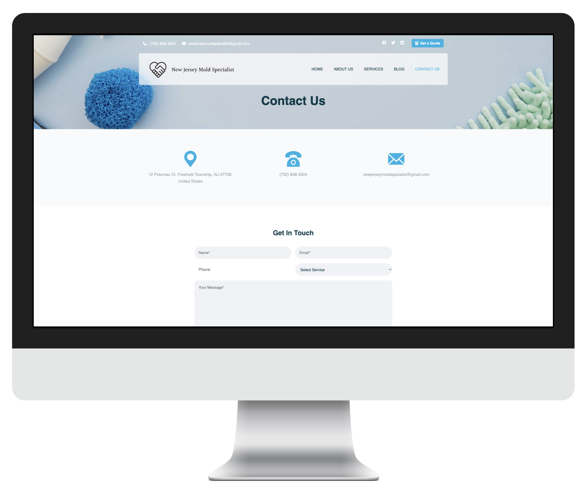 We developed a conversion-driven, mobile-first WordPress website tailored to New Jersey Mold Specialist’s goals. The design emphasizes clear calls to action—like “Get a Quote” and “Call Now”—and includes dedicated landing pages for core services such as mold inspection, remediation, air duct cleaning, and flood damage restoration